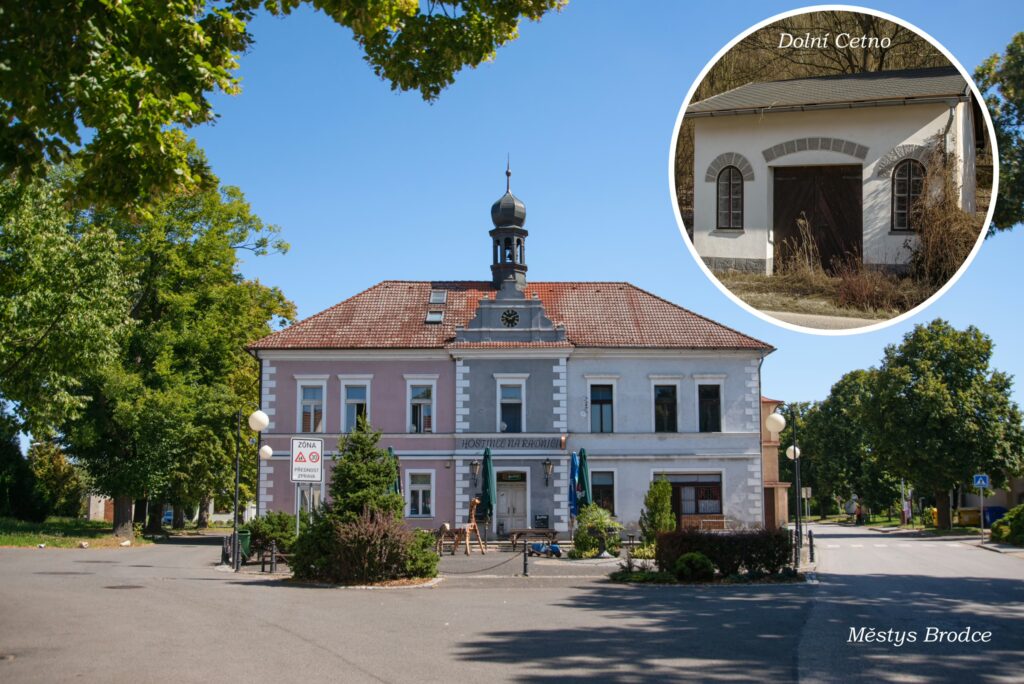 Bývalá radnice v městysi Brodce u Nových Benátek a obřadní síň na židovském hřbitově v Dolním Cetně u Mladé Boleslavi – v Brodcích se narodil Ing. Karel Pick a na dolnocetenském hřbitově byli pohřbeni předkové a příbuzní Pickových.